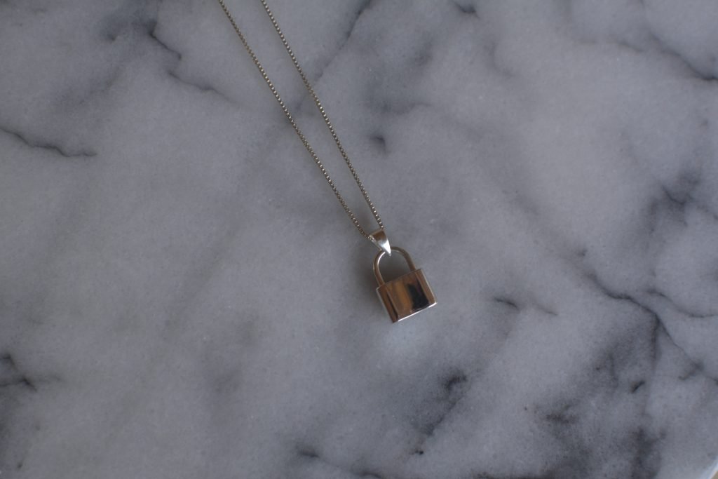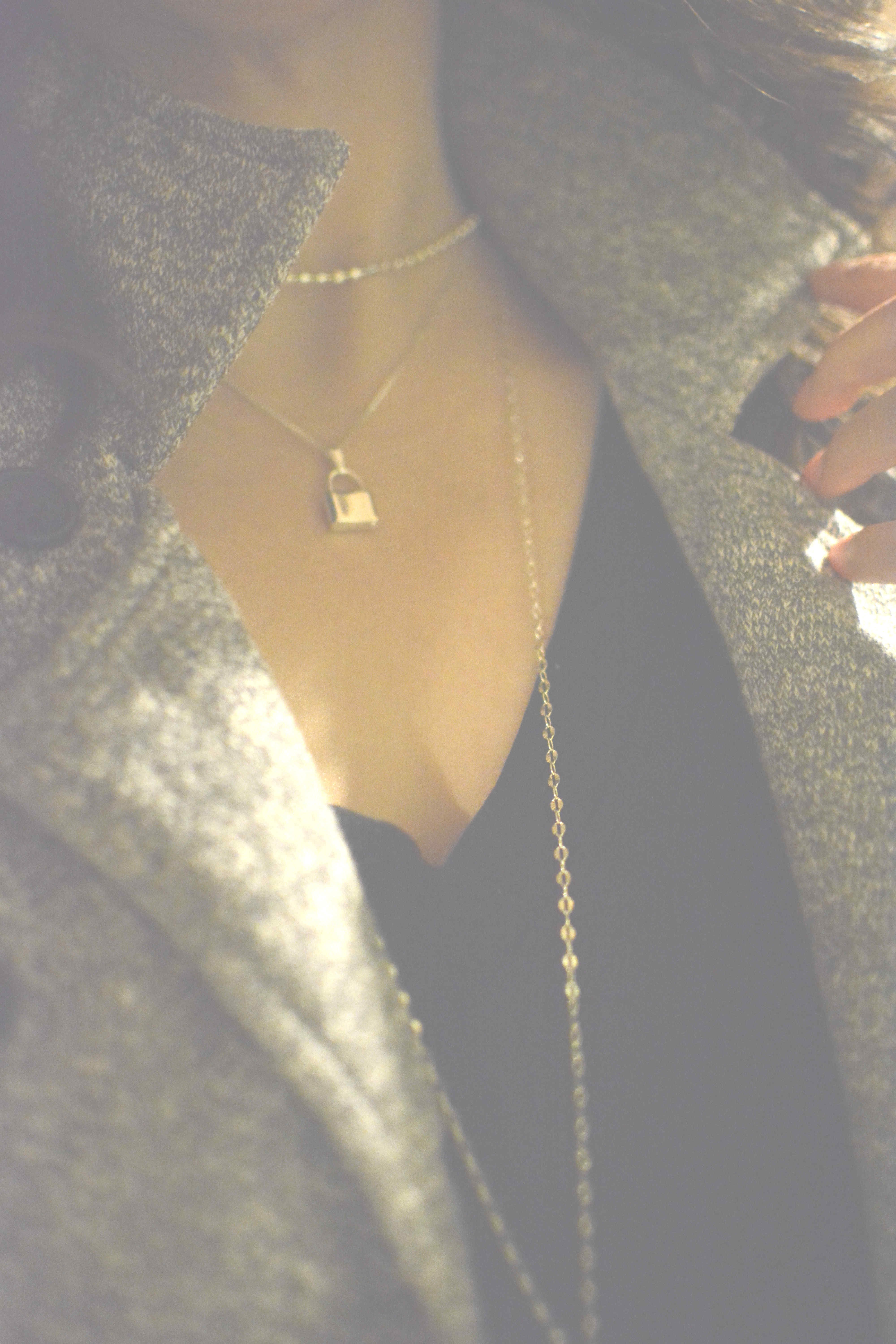 I like to layer it with my other high shine pieces, and with the padlock necklace on a 16″ chain, it just hits that perfect length to be the centerpiece.